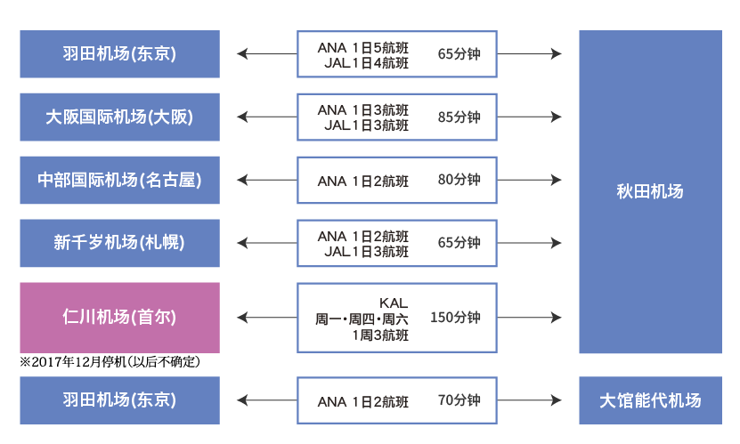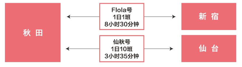 | 秋田→新泻 | 运航日/周二・周三・周四・周五・周六・周日 所要时间/6小时55分钟 |