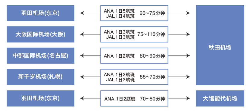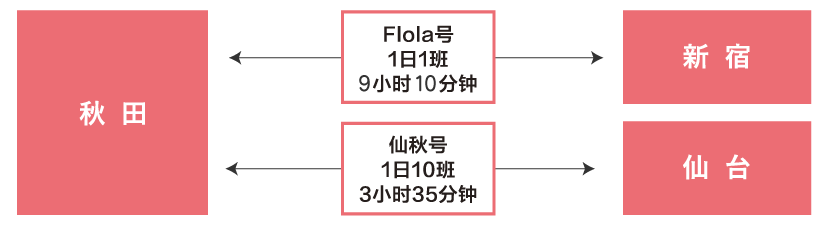 | 秋田→新泻 | 运航日/周二・周三・周四・周五・周六・周日 所要时间/6小时55分钟 |