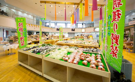 这里除了有当地出产的时令蔬菜和水果、gako(咸菜)、海产品等加工食品之外,这里也陈列着秋田名物「烤米棒」和「稻庭乌冬」等土特产。
