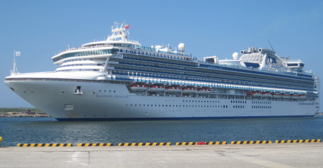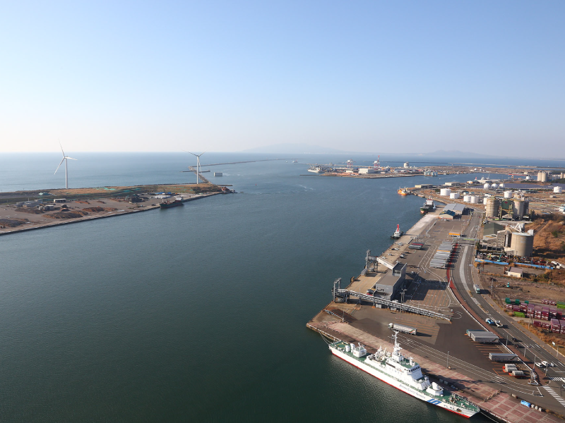 附近的港口停泊有大型游船,国内外很多游客都十分享受在秋田停留。