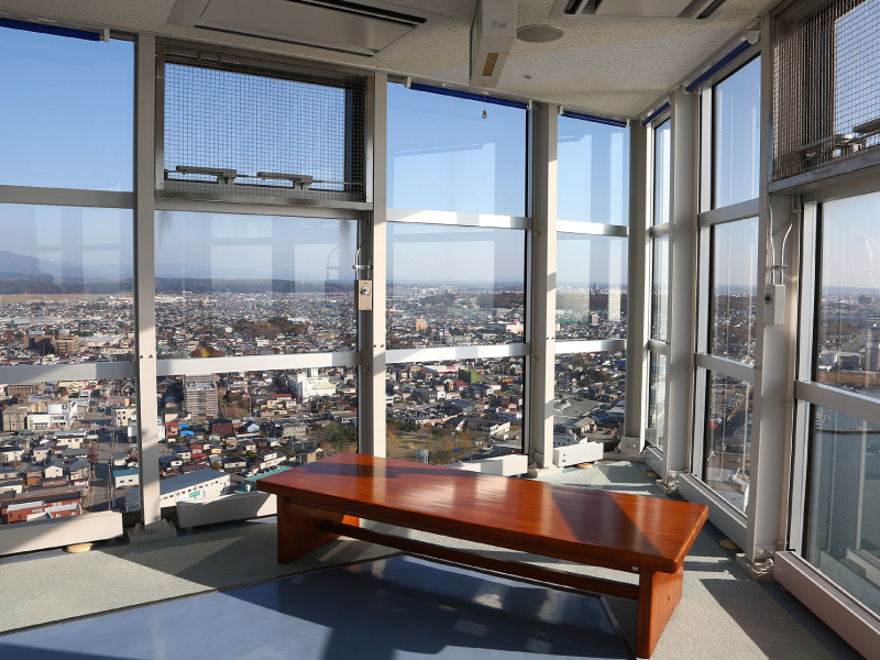 放眼望去,不断延展的秋田市区,夕阳落下的日本海尽收眼底。在晴朗的天气里还能望到鸟海山以及男鹿半岛。夜晚在美丽的夜景中闪耀着光芒。这里不仅仅是家人游玩的场所作为约会地点也深受大家欢迎。
