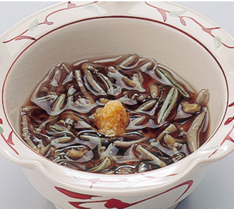 莼菜是泛着小船在池塘或池沼上小心翼翼采摘到的水草嫩芽。因为表面有一层果冻状的粘膜,所以独特的滑溜感是其最大的特点。可以放在火锅里炖煮或者加醋和酱油拌着吃。