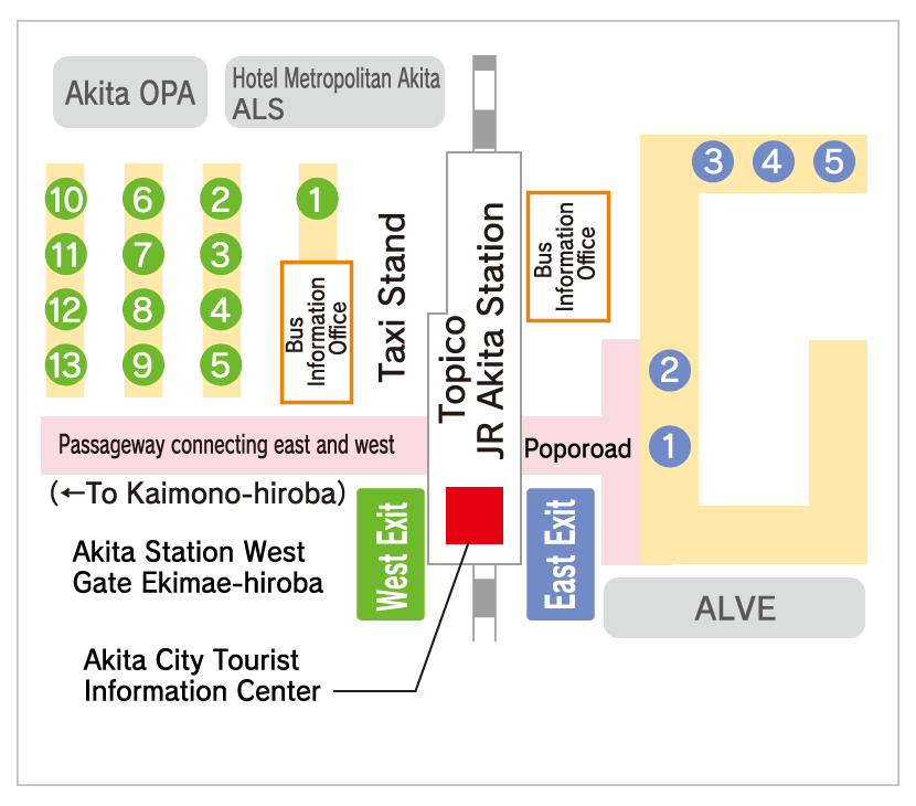 Akita Station West/East Exit Bus Platform Information (in Japanese only)