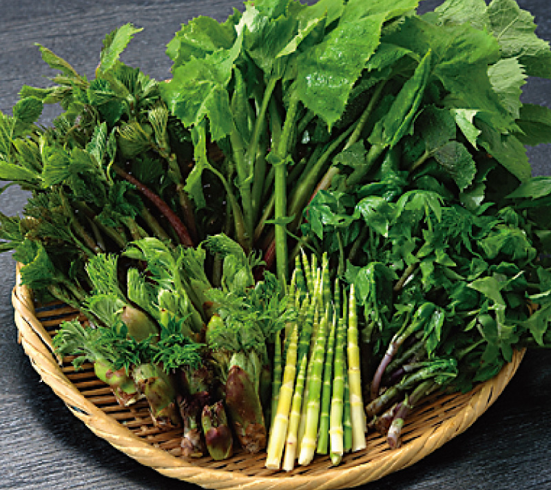 The fields and mountains of Akita are treasure troves of edible wild plants in spring. Enjoy the unique flavors and textures  of wide plants such as hon’na, aiko, shidoke, taranome (bud of aralia elata), and bamboo shoots in the form of tempura or boiled greens.