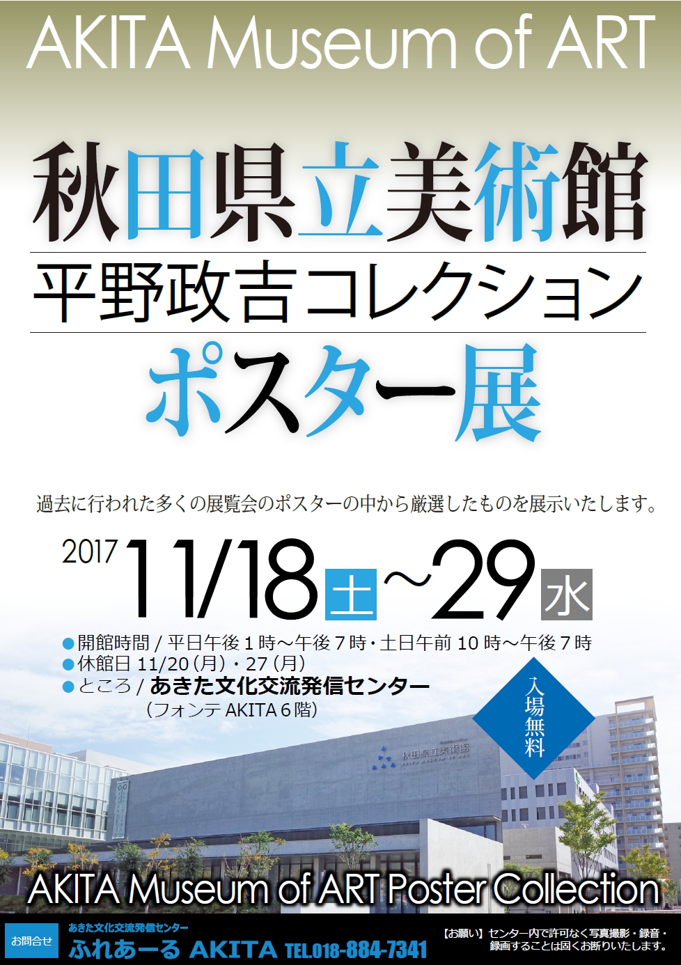 秋田県立美術館の歩みをポスターで振り返る、初めての企画展です。ぜひお越し下さい。