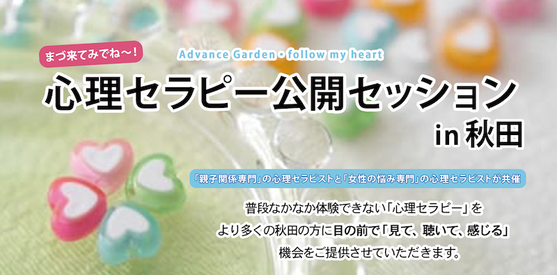 秋田県で「心理セラピー公開セッション」を体験できる唯一の機会となります。