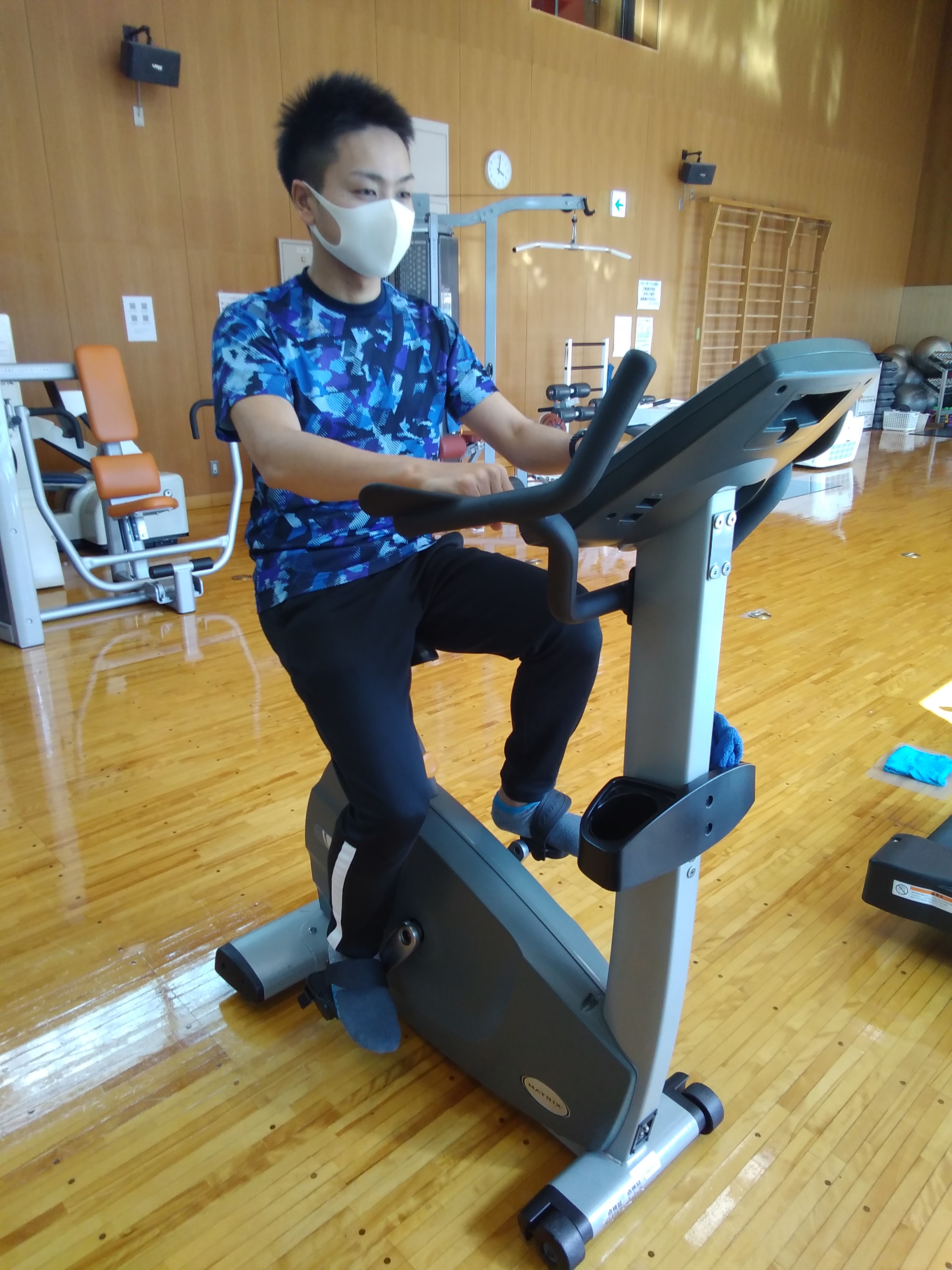 ・エアロバイク(全身持久力) 13分間エアロバイクを漕いで、最大酸素摂取量を測定します。