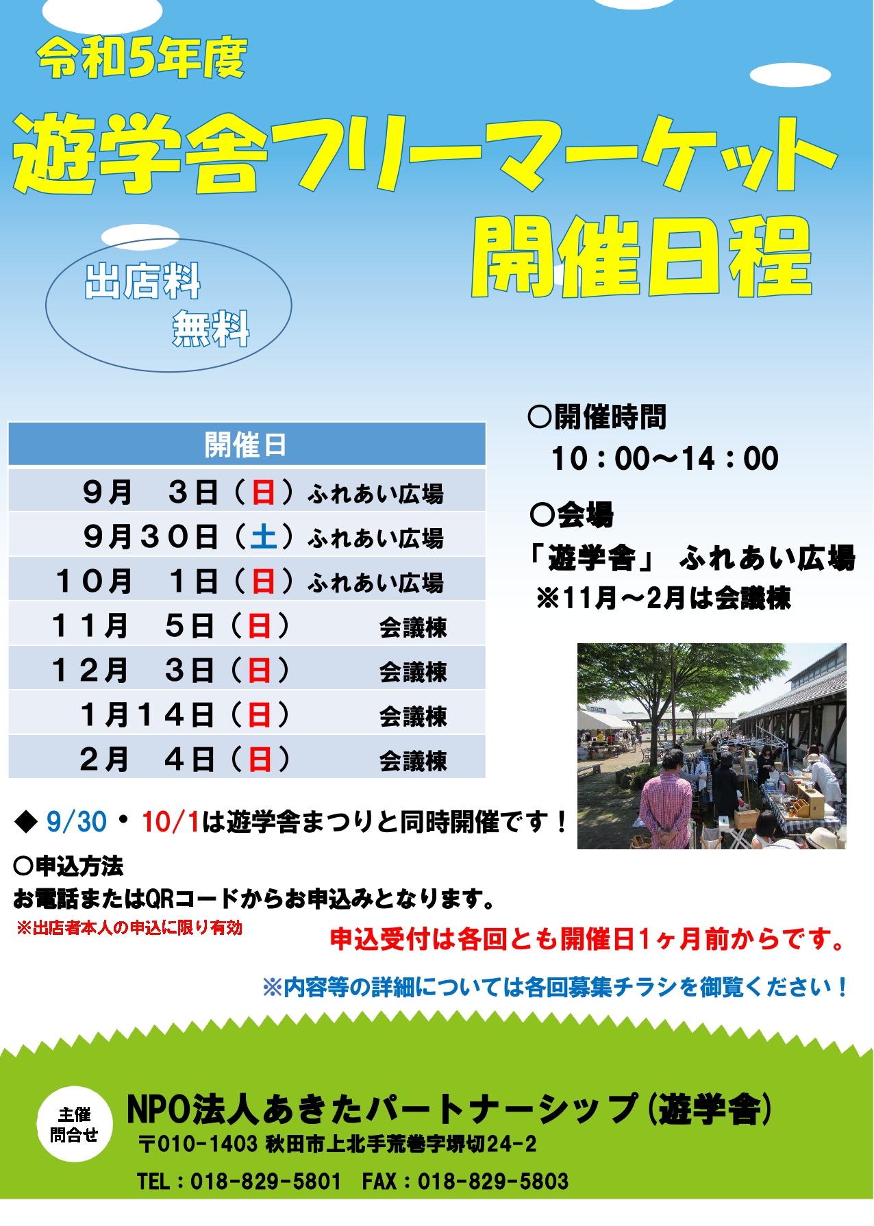 ※荒天等により中止の場合は、秋田パートナーシップ公式Facebook・Twitter、遊学舎ホームページ等でお知らせいたします。