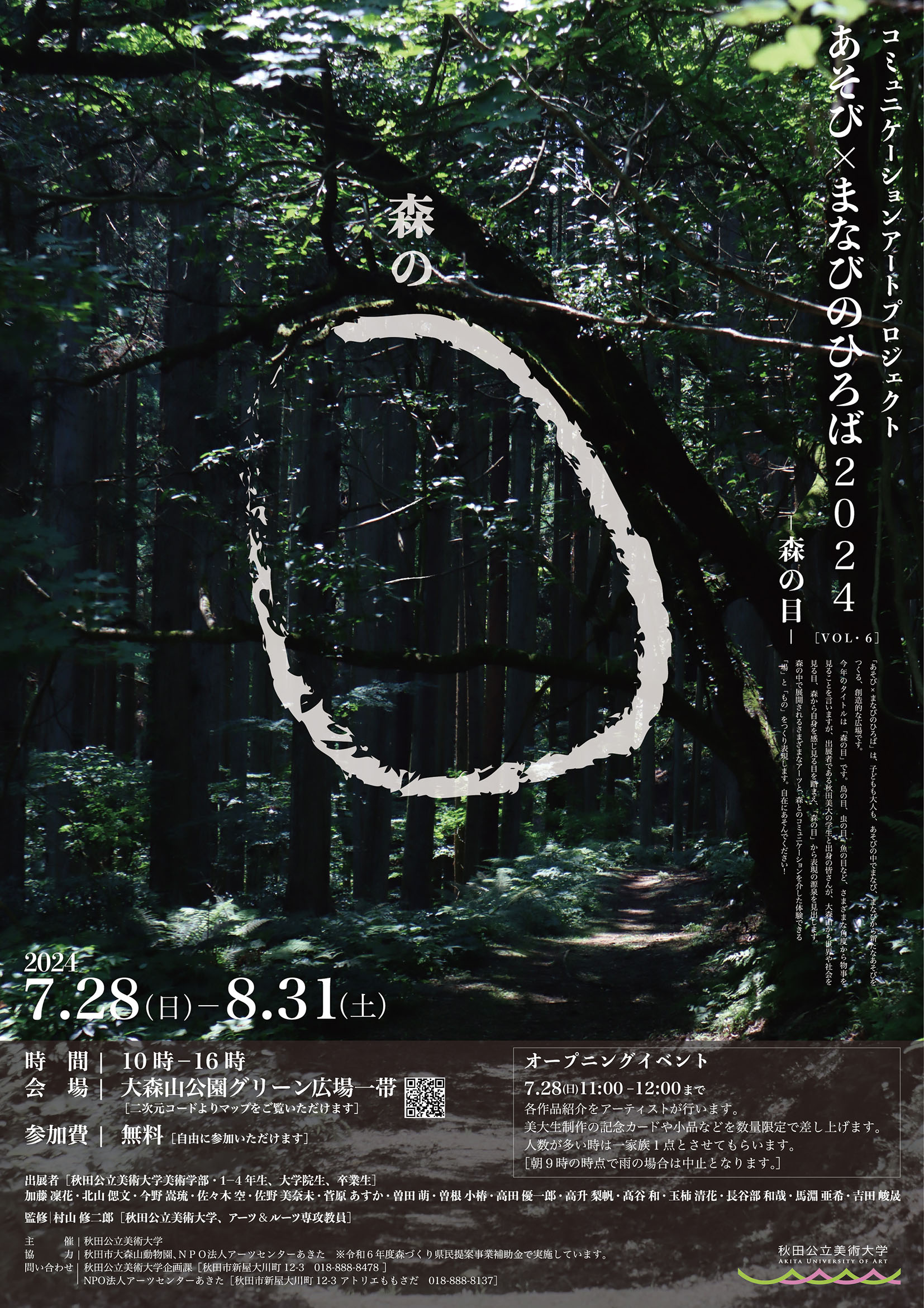 6回目となる今年はタイトルを「森の目」としました。秋田公立美術大学の学生と卒業生が、大森山から世界や社会を見る目、森から自身を感じ見る目を踏まえて、「森の目」から表現の源泉を見出します。