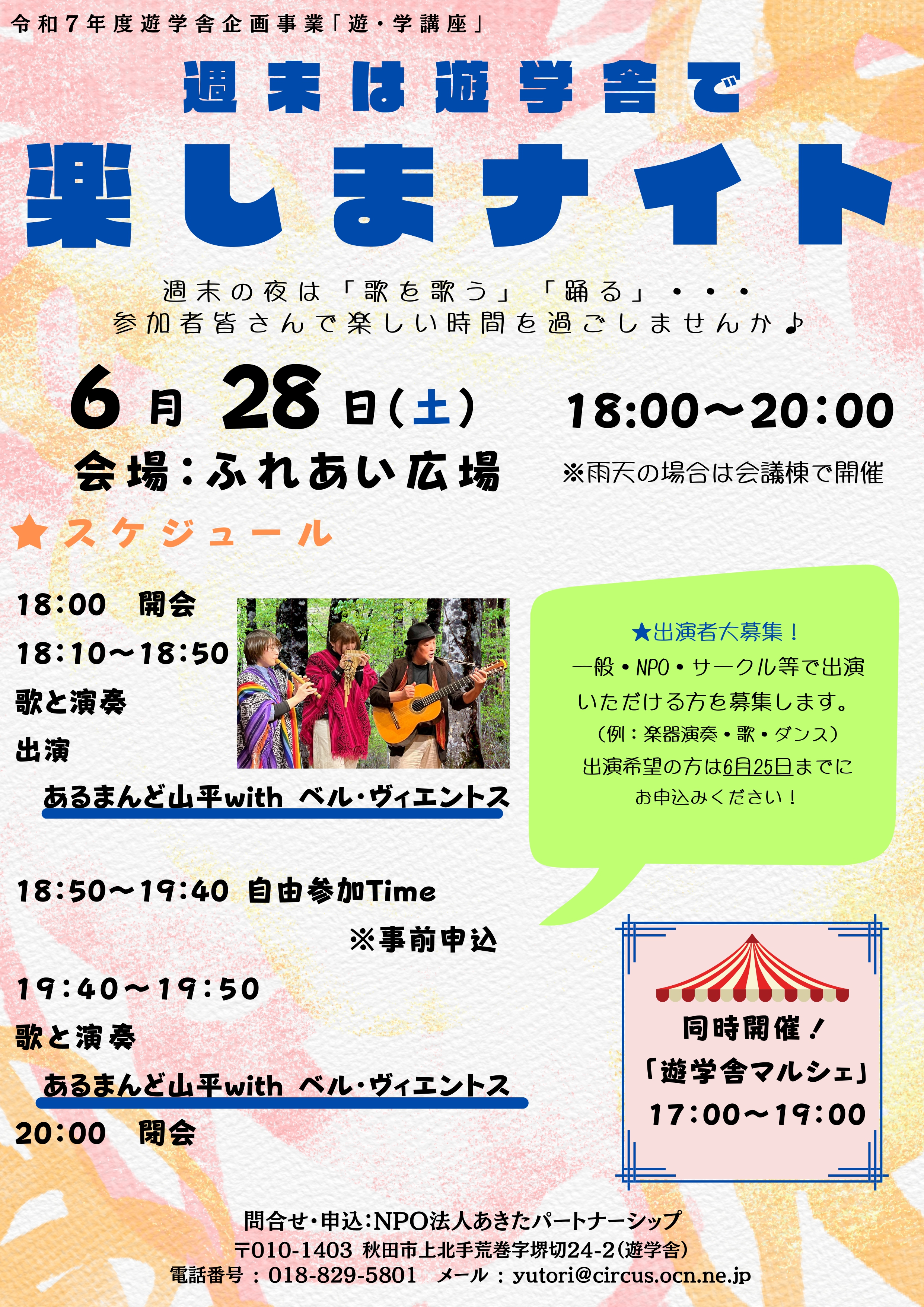 連絡先:018ー829-5801(遊学舎)