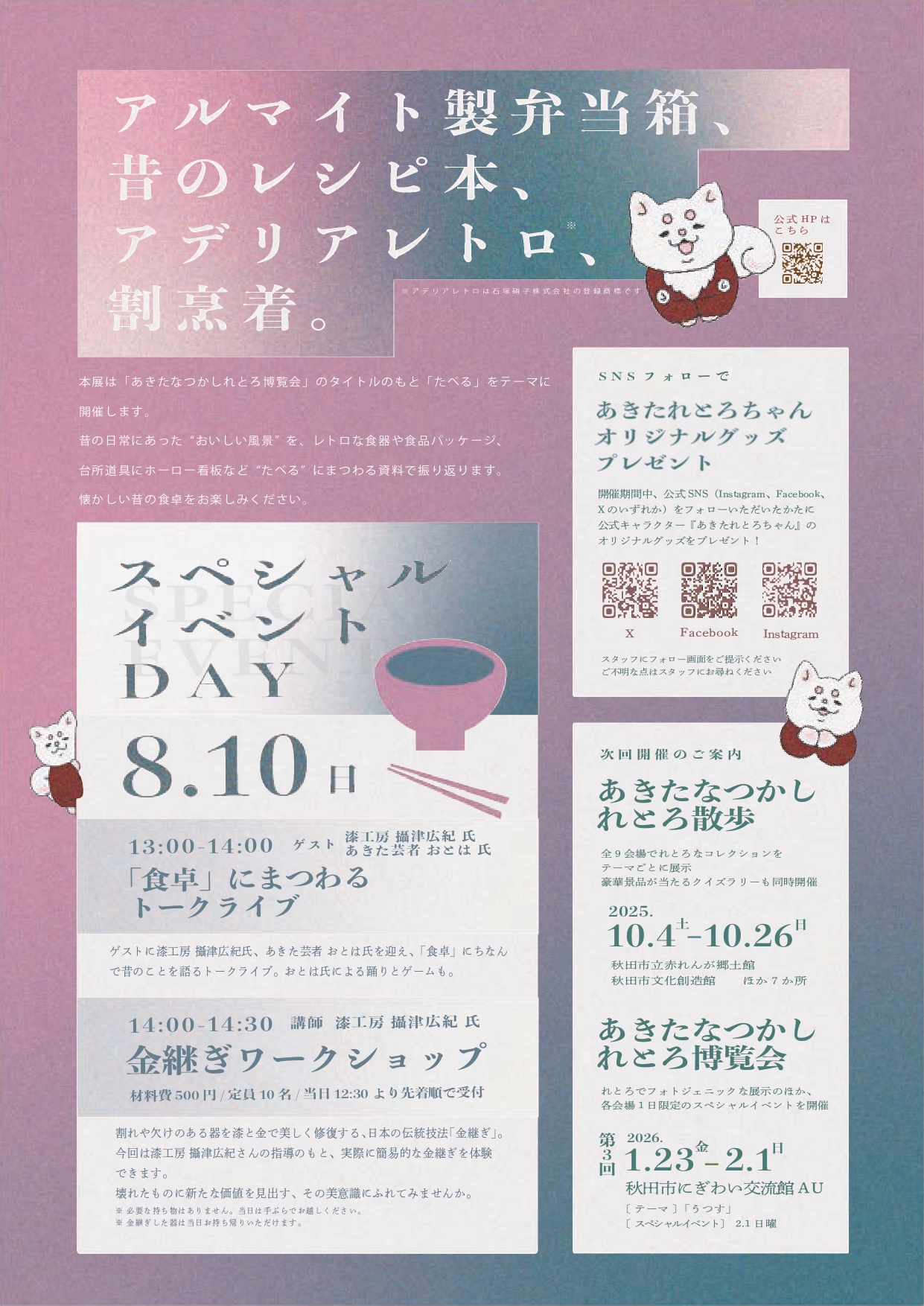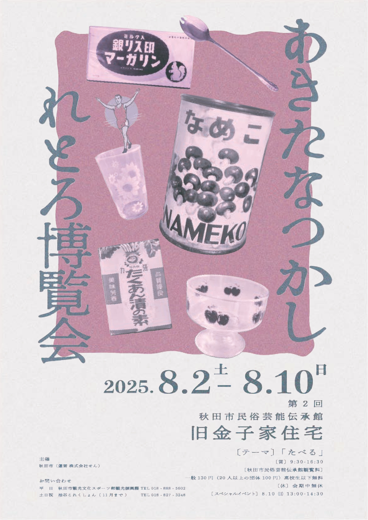 令和7年8月2日(土)~10日(日)、秋田市大町の秋田市民俗芸能伝承館 旧金子家住宅にて「第2回あきたなつかしれとろ博覧会」が開催されます。