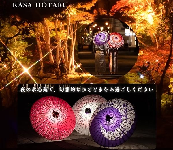 また、期間中「傘蛍」という光る和傘の貸し出しを行っており、20分間コースならば、苑内の好きな所で撮影も可能です。