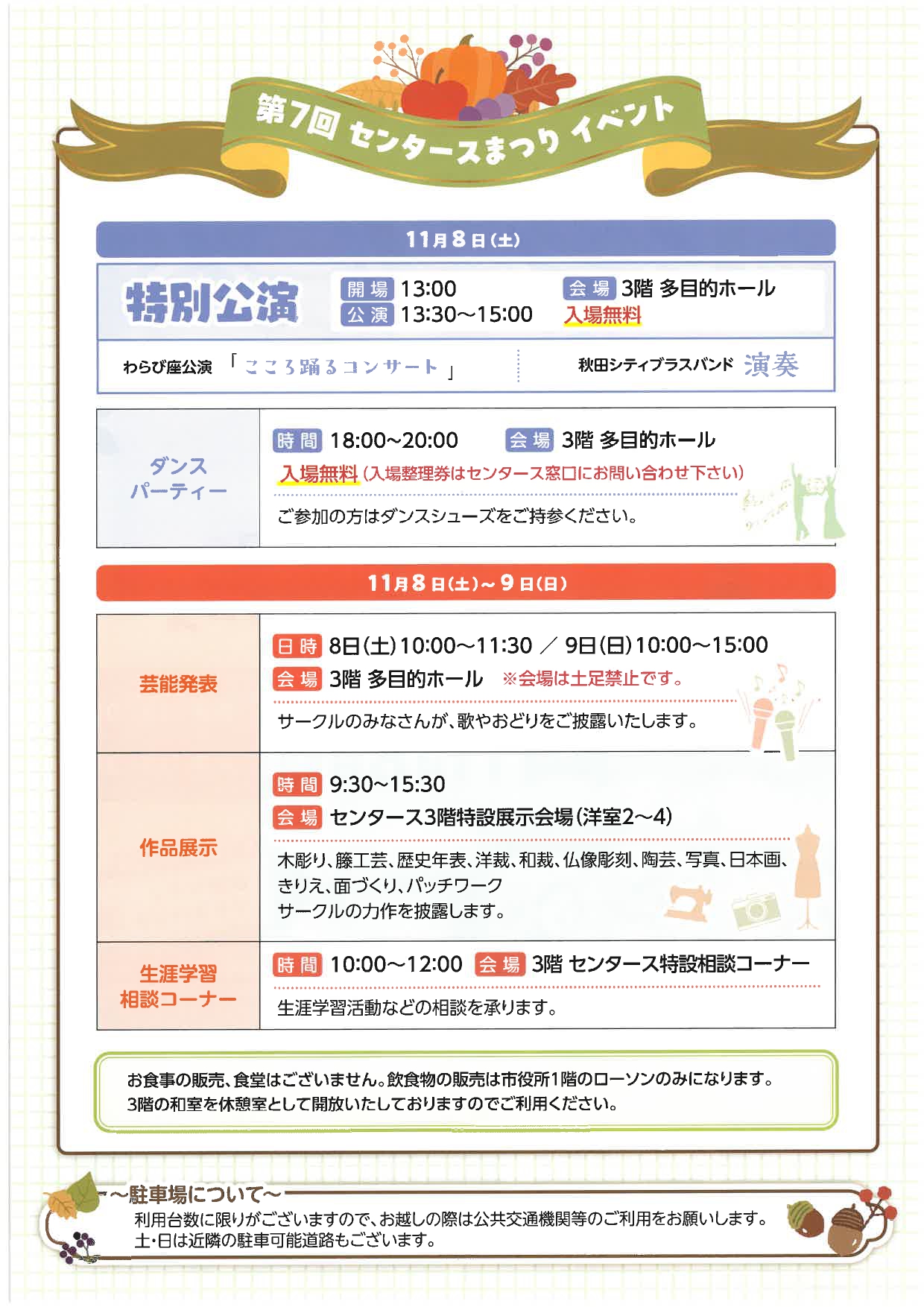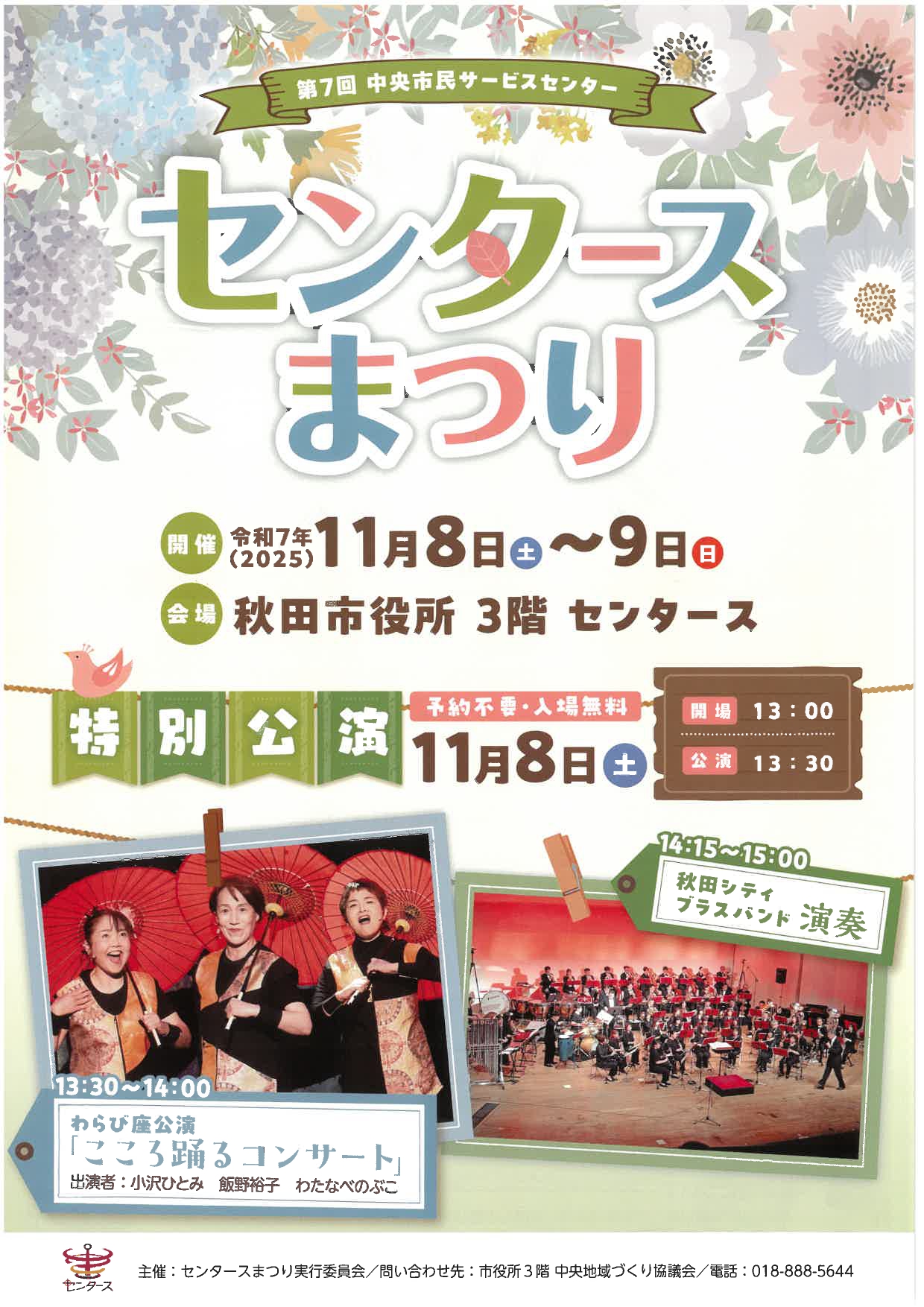 秋田市役所3階 センタースにて「令和7年度 センタースまつり」が開催されます。