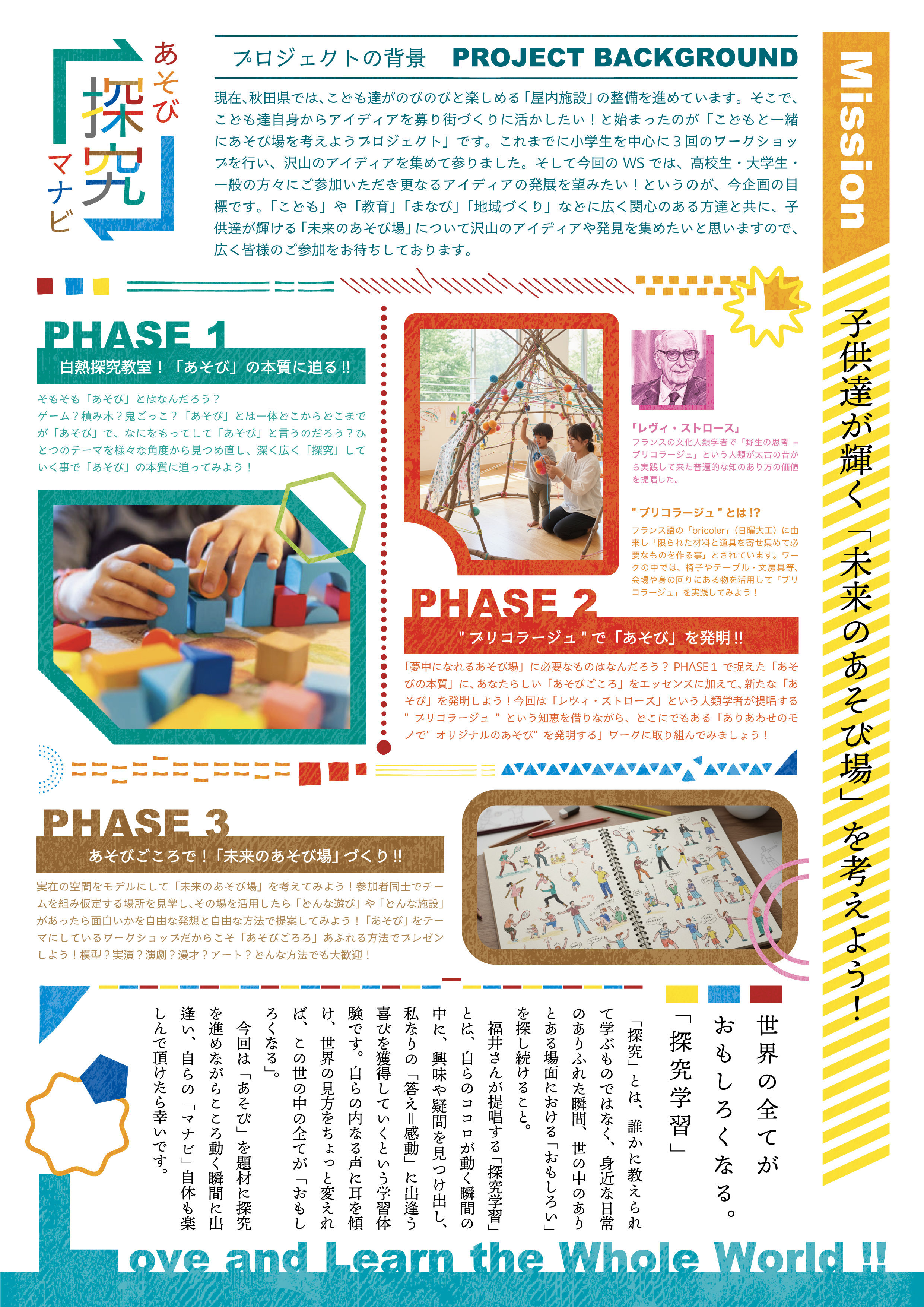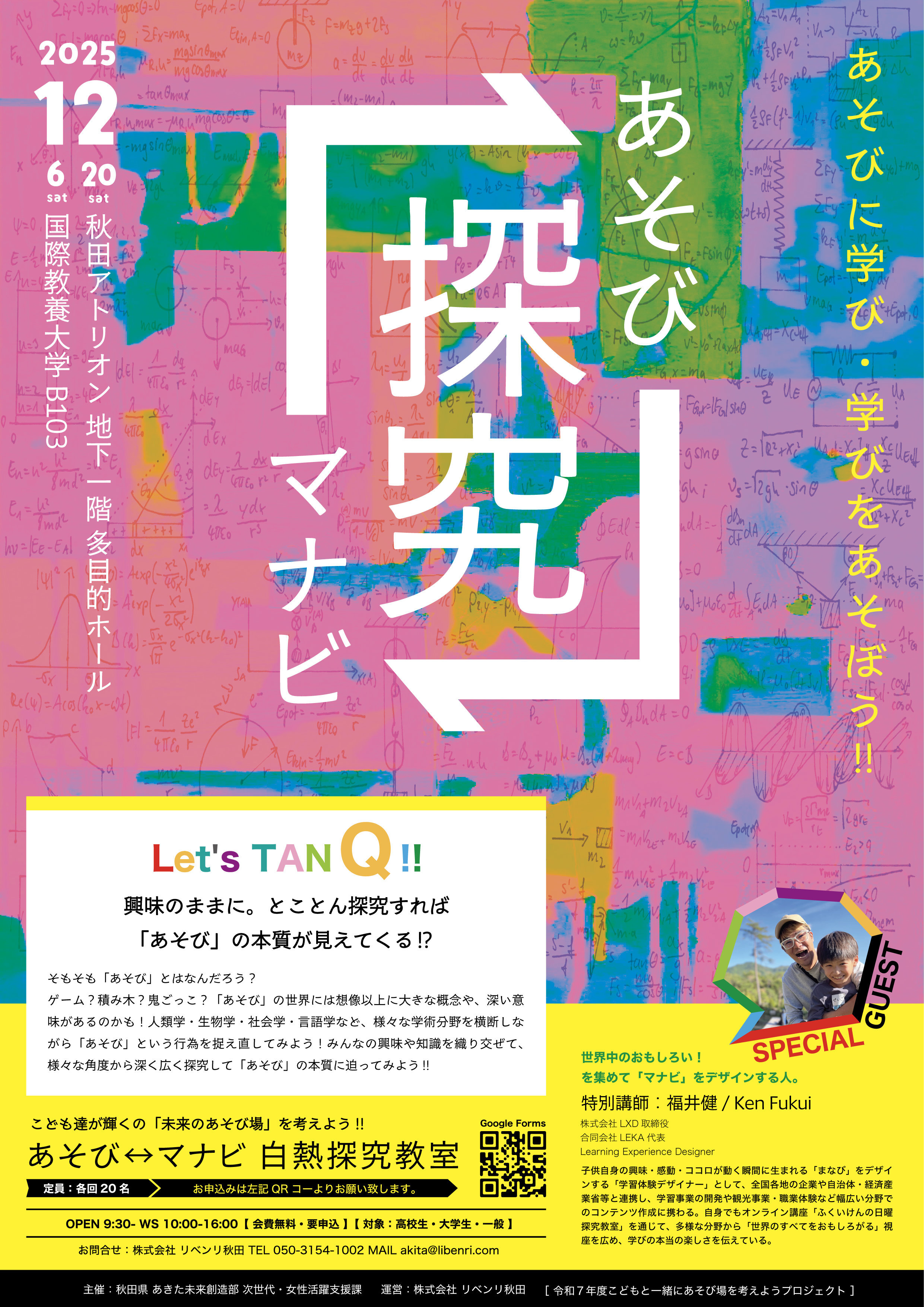 「遊び」を紐解いていくと新しい「学び」の形が見えてくる。秋田の未来の「遊び場」を発明して、これからの「学び場」をデザインしよう!