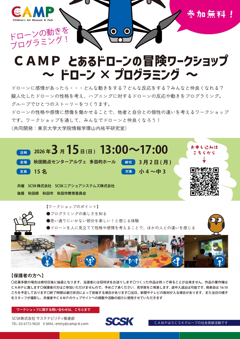 13時~17時までの小中学生の皆さんを対象とする無料のワークショップです。