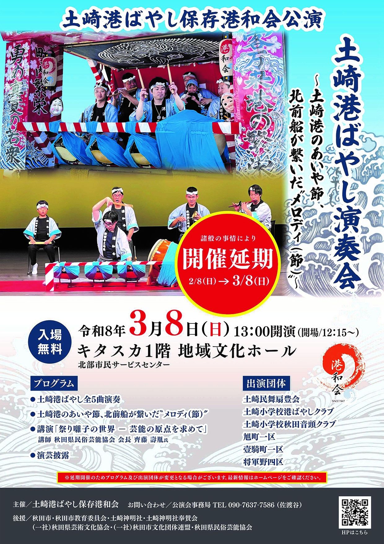 2026年3月8日(日)土崎港ばやし保存港和会3年ぶりの公演会を開催します。