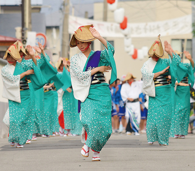 「おけさ」は九州の西部沿岸で唄われた「はいや節」が北前船などにより伝えられたといわれる。夏の盆踊りとして総勢400人があでやかな衣裳で踊り歩く。
