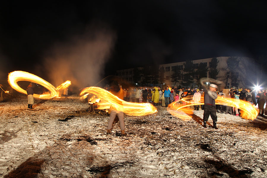 五穀豊穣、健康増進、家内安全を祈り、秋田市仁井田地区で行われる小正月行事。 約40年間途絶えていたが、1989年に復活した。 炎のついたワラの輪が、暗闇のなか幻想的に浮かぶ。