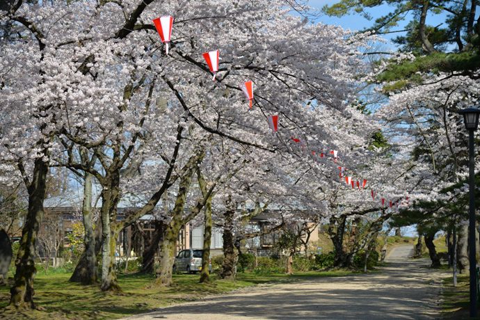 秋田藩佐竹氏二十万石の居城跡・千秋公園は、日本さくら名所100選のひとつ。