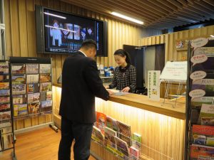 また、秋田市内の観光ガイドブックを始め、秋田県内各地の観光ガイドブックやパンフレットをご用意しているほか、英語で会話のできる職員が常時おり、海外のお客様向け対応も充実しておりますので、お気軽にご利用下さい。