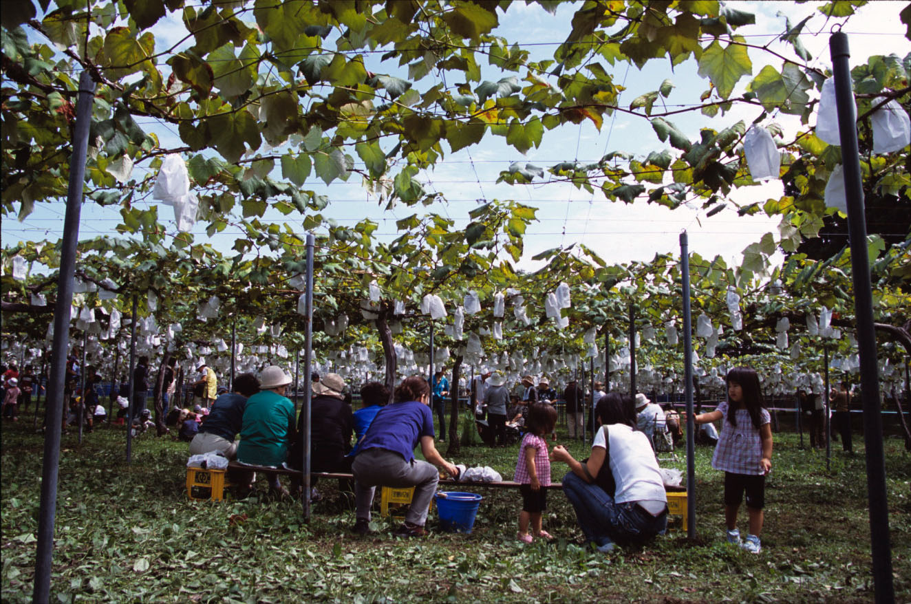 과수재배가 활발한 유와의 인기 관광지. 가을의 수확시기에는 포도 따기 체험을 무료입장으로 즐길 수 있다.