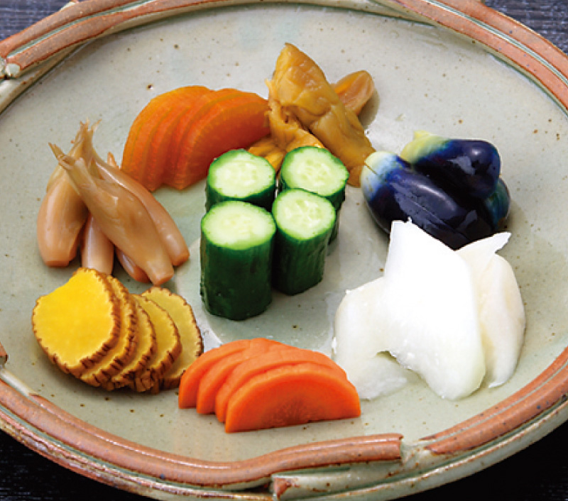 소금 절임을 말한다. 무를 화로 위에 매달아 훈제 시켜 만든 ‘이부리갓코’, 손도끼로 거칠게 자른 ‘나타즈케’, ‘된장절임’, ‘간장절임’ 등으로 아키타 야채를 맛볼 수 있다.