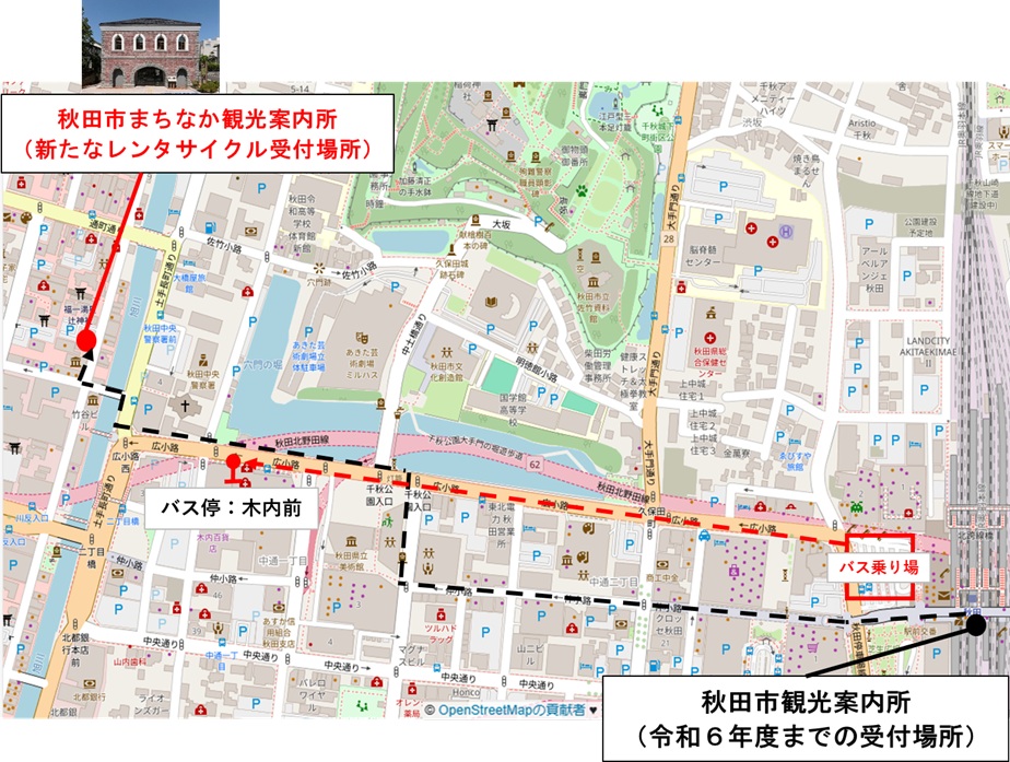 令和7年4月から秋田市観光レンタサイクルの受付・貸出場所を以下のとおり変更しますのでご了承ください。