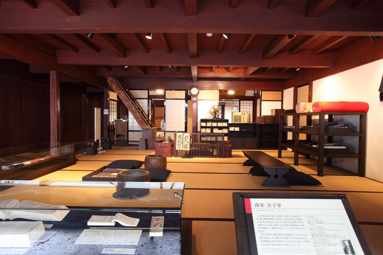 金子家は、江戸時代後期に質屋・古着商を開き、明治初期に呉服・太物(綿織物・麻織物)卸商を創業。昭和57年まで、この建物で商売が営まれていた。