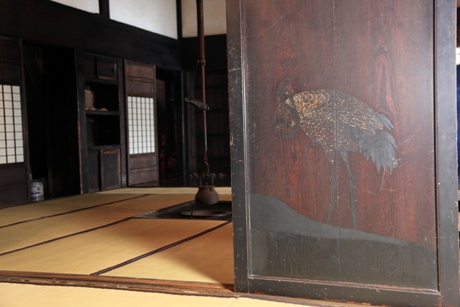 茅葺き屋根や板壁、鉋仕上げ・チョウナ仕上げによる部材などから、いかにも古風な民家をうかがうことができます。それとともに、入母屋に構えた厩中門の屋根や、書院造り風の座敷などからは、県内屈指の豪農としての格式の高さを知ることができます。