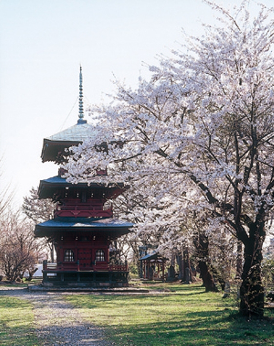外町に住む商人や職人の守り神として歴史ある神社。境内には木造朱塗りの三重の塔がそびえ、厳かな雰囲気に包まれている。県有形文化財。