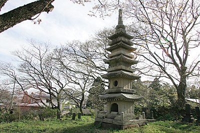 全国的にも珍しい石造りの五重塔(市有形文化財)や石の仁王像がある。境内には七面天女をまつる天面堂や保存樹のツバキが趣を添える。