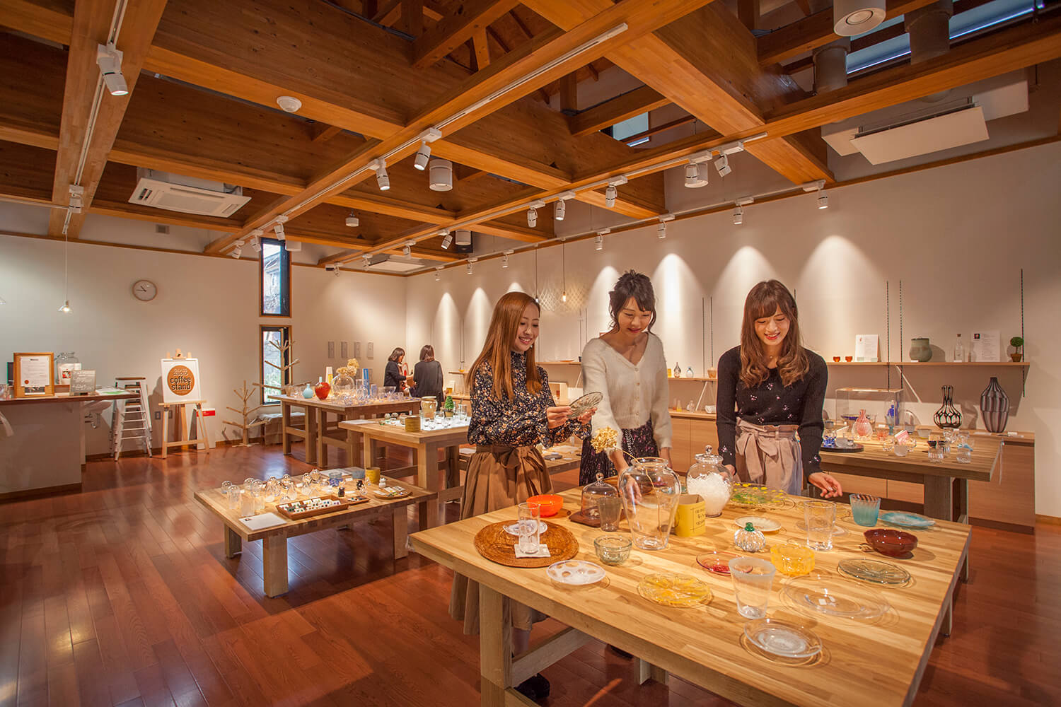 施設内のショップでは、工房所属作家や県内外のガラス作家の作品が展示され購入できます。