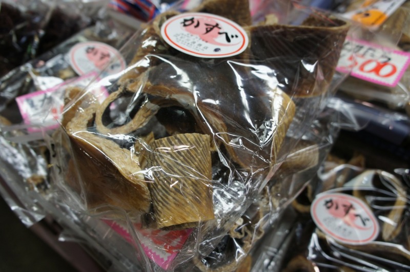 「カスベ」とはガンギエイ科のエイのヒレです。秋田に入ってくるカスベは、北海道北部の沿岸で獲れたカスベを10月末~12月と2月~5月の年2回、冷たい風で乾燥させたものです。