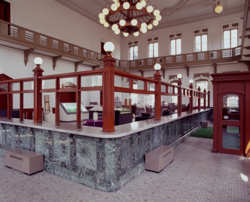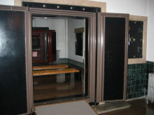 頑丈な扉や壁に囲まれた20畳ほどの金庫室も訪れる人の興味をそそります。中には人の身丈ほどもある年代物の金庫。銀行時代、どのくらいのお金が保管されていたのでしょうか。