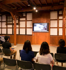 高清水の酒造りの歴史を大画面で上映。酒造りに関する英語版の動画もあり。高清水自慢の地酒の試飲コーナーもあります。