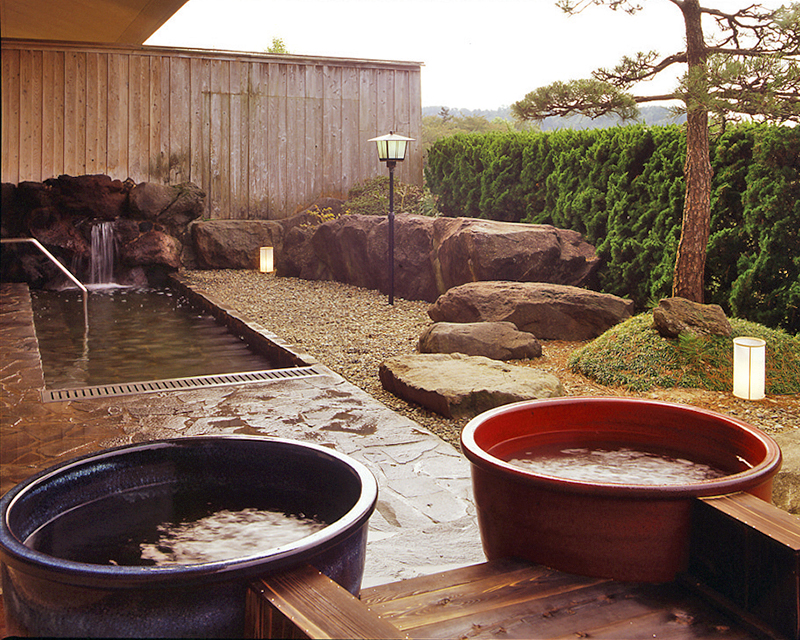 しょっぱく、ぬめりがあってスベスベする、無色透明の「秋田温泉 元湯」と黄みがかった茶褐色で従来の源泉よりもしょっぱさが強い「さとみ温泉」。異なる二つの温泉を大浴場で楽しむことができる。