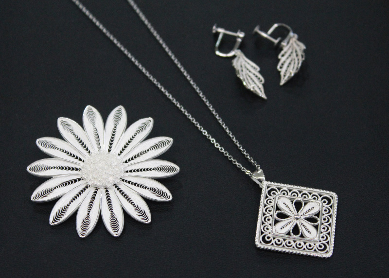 所謂銀線細工是指用像絲一樣極為細長的銀線制作纖細的裝飾品和美術作品的一種傳統工藝。將扭絞在一起的銀綫用滾輪碾壓整形、然後再反複編織、纏繞,從而做成質樸中透著端莊,熠熠又生輝的精美作品。目前,銀綫細工已被列為秋田市指定無形文化遺產。